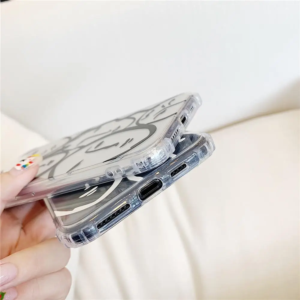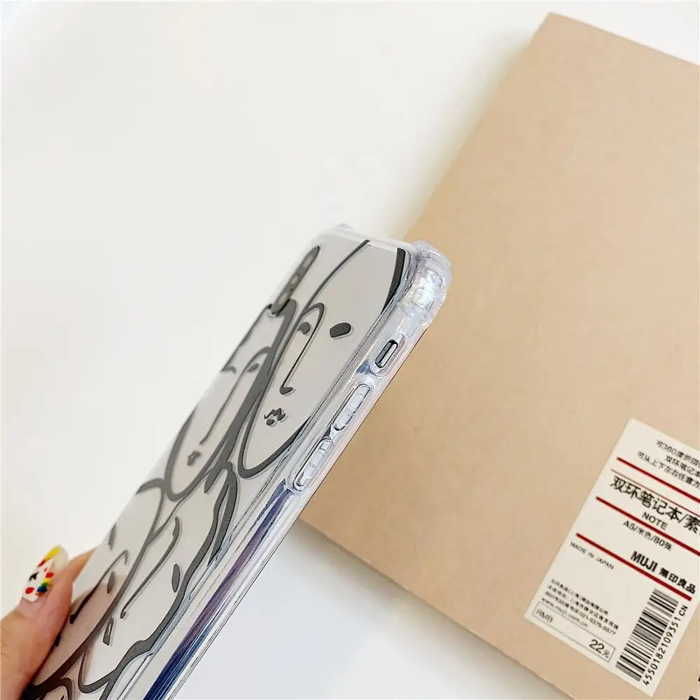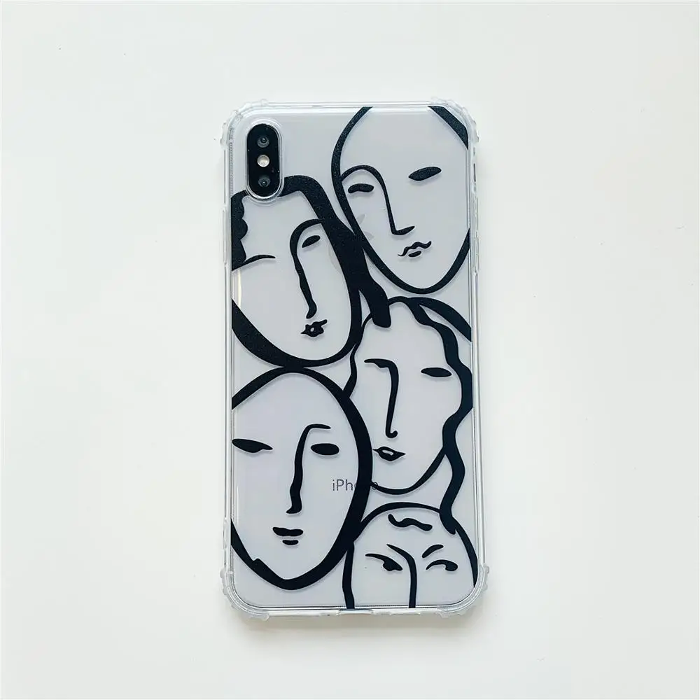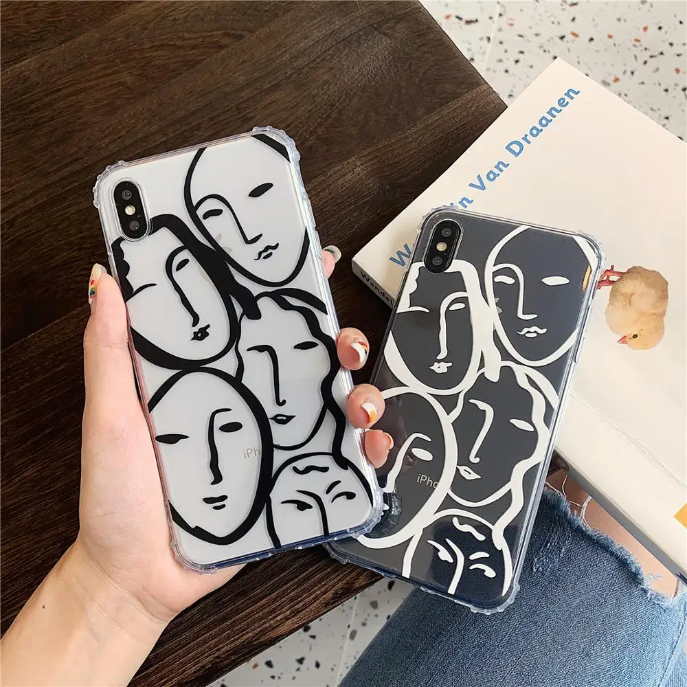 Promo Cute Lovely Girly Line Art Face Couple Transparent Phone Cases For iPhone 8 7 6 6s Plus X XS 11 Pro