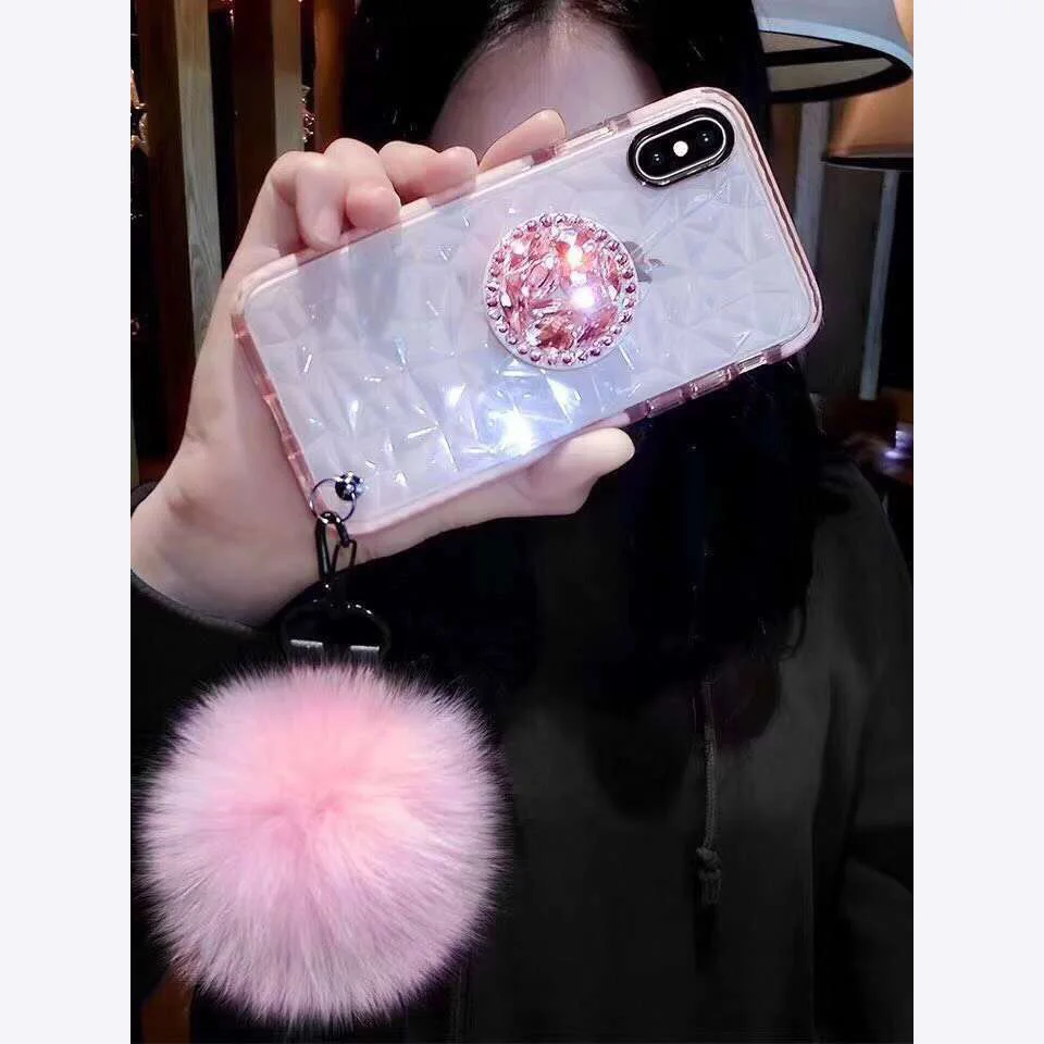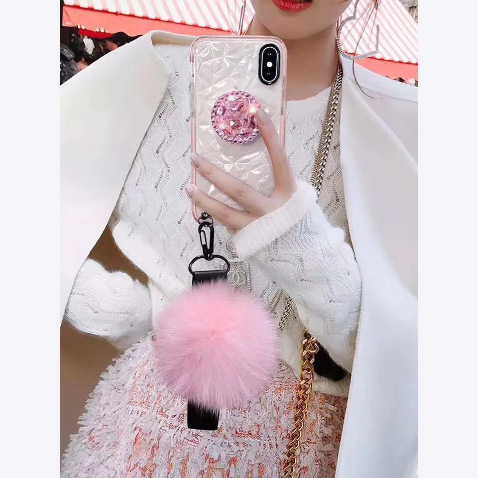 Ideal For Samsung S8 S9 S10 Note10 9 Fur Ball+Crystal 3D Bracket+Strap diamond Cover For iphone 11 Pro 6