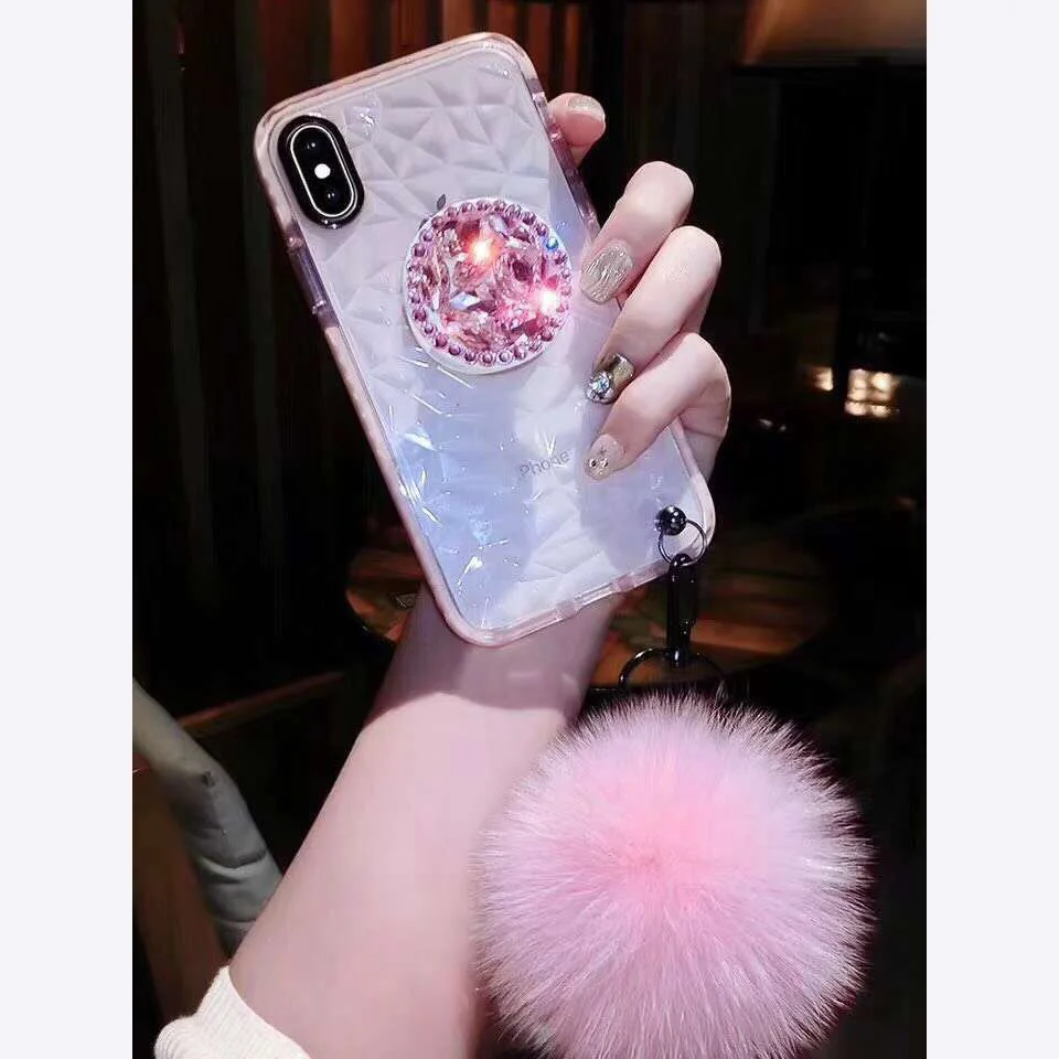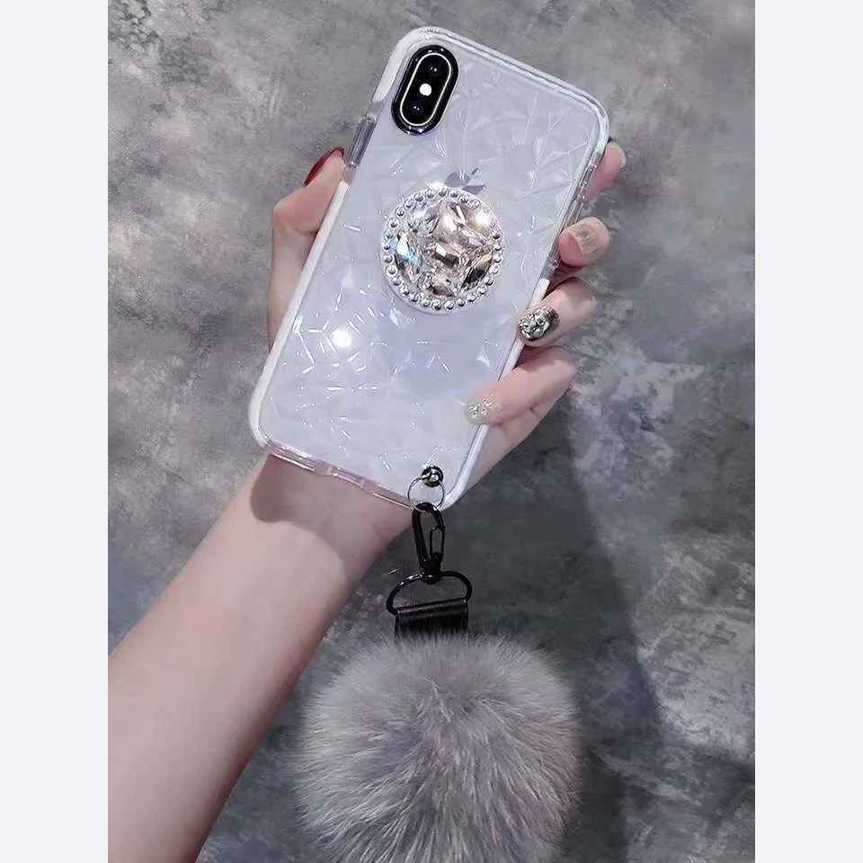 Most effective For Samsung S8 S9 S10 Note10 9 Fur Ball+Crystal 3D Bracket+Strap diamond Cover For iphone 11 Pro 6