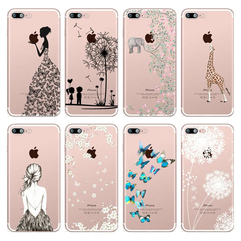New Elephant Butterfly Dandelion Patterned Soft Silicone TPU Case Cover For iphone 7 8 6 6s Plus 5 5s S